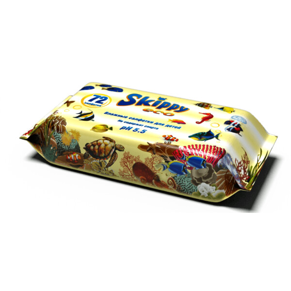 Влажные салфетки для детей от белорусского бренда Skippy произведены из высококачественного прочного и мягкого нетканого полотна. Салфетки обладают спокойным ненавязчивым запахом и не содержат в своем составе спирта. Изделие имеет уровень pH 5,5 и отлично подходит для заботы за нежной и чувствительной кожей ребенка. Высокое содержание вискозы позволяет использовать салфетки не только для ухода за малышом, но и для хозяйственных нужд. Яркая красочная упаковка содержит 72 салфетки размером 15х20 см.