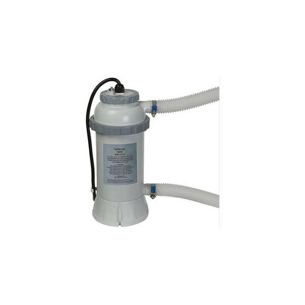Оборудован автоматом УЗО (защита от поражения током), сенсором уровня воды и термостатом. Мощность 3 кВт, необходима розетка на 15А. Для ускорения процесса нагрева рекомендуется накрыть бассейн покрывалом. Температура воды в бассейне должна быть не ниже 16°C и не более 35°C. Примерное время увеличения температуры воды на 1°C - 1-2 ч. Категорически не рекомендуется использовать нагреватель, когда в бассейне находятся люди! Для работы нагревателя необходима циркуляция воды, без подключения к фильтр-насосу использование не допускается!