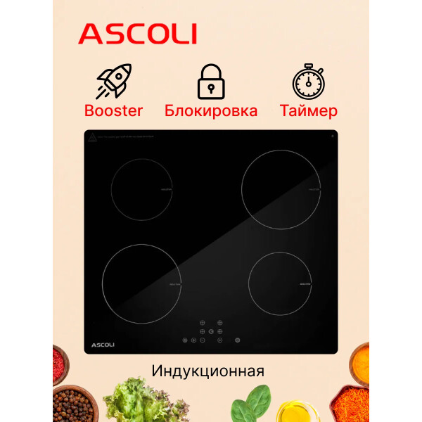 Встраиваемая электрическая варочная панель Ascoli HI604-32AB с удобными переключателями, которые позволят вам с легкостью пользоваться этой электрической панелью. Панель расположена спереди, что обеспечивает удобный доступ.
