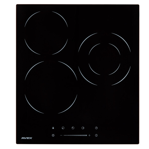 Встраиваемая электрическая варочная панель Avex EM 4539 B имеет три конфорки, одна из которых двухконтурная. Рабочая поверхность сделана из стеклокерамики Kanger. Присутствует сенсорная слайдерная панель управления. Предусмотрен таймер на 99 минут.