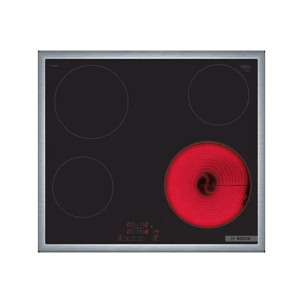 Электрическая варочная панель Bosch PKE645BB2E оснащена таймером, предназначенным для установки времени приготовления пищи. После окончания выбранного периода устройство воспроизводит звуковой сигнал или отключает конфорку. Если модель долго включена или нагрелась до критической температуры, устройство автоматически прекращает работу панели. Поверхность произведена из прочной стеклокерамики. Материал с легкостью очищается от капель жира и загрязнений с помощью специального средства без абразивных частиц.