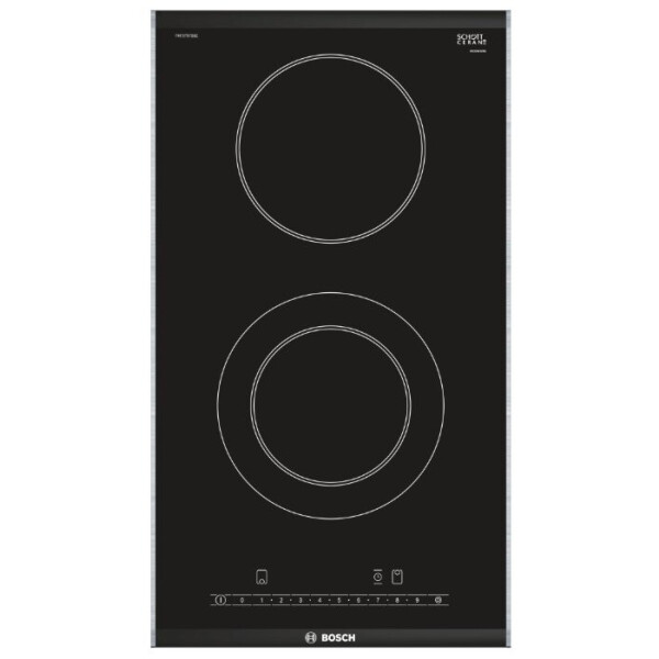 Электрическая варочная поверхность BOSCH PKF375FP1E выпускается специально для встраивания в домашний кухонный гарнитур и отличается эффектным внешним видом, безупречным дизайном. На черной стеклокерамической панели этой модели находятся две экспресс-конфорки, каждая из которых имеет 17 уровней мощности. Одна из конфорок обладает двумя контурами нагрева и повышенной мощностью, она обеспечивает быстрое приготовление любых домашних блюд.