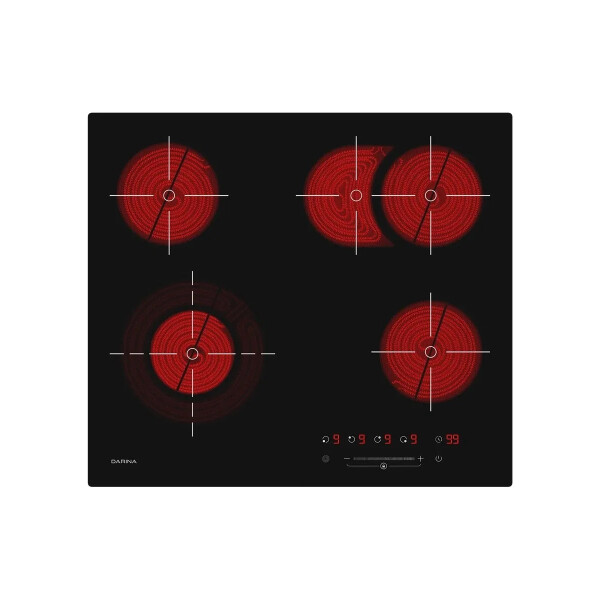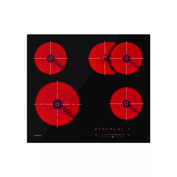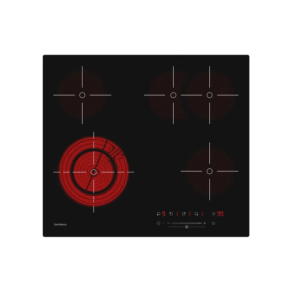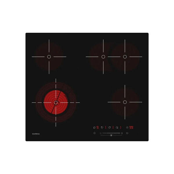 Электрическая варочная панель из стеклокерамики в новом дизайне, привнесет комфорт в повседневный быт и создаст эстетическую гармонию современного кухонного интерьера. Преимуществом у данной модели являются разные по диаметру конфорки. Тройная зона нагрева позволяет использовать посуду большого размера. А одна из конфорок имеет не круглую, а овальную расширенную зону нагрева, для приготовления пищи в нестандартной посуде, например в утятнице.