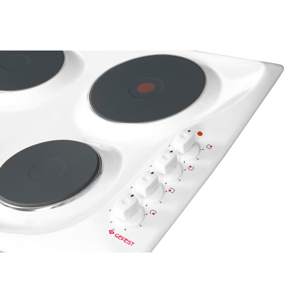 Классическое белое исполнение позволит гармонично дополнить дизайн любой кухни. Gefest СВН 3210 обладает индикатором включения/выключения. Переключатели поворотные. Параметры модели – высота достигает 7.8 см, глубина – 52 см, а ширина – 59 см. Мощность электроконфорок стола – от 1.0 до 2.0 кВт. Модель отвечает требованиям первого класса безопасности.