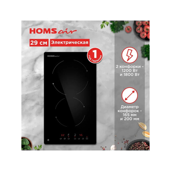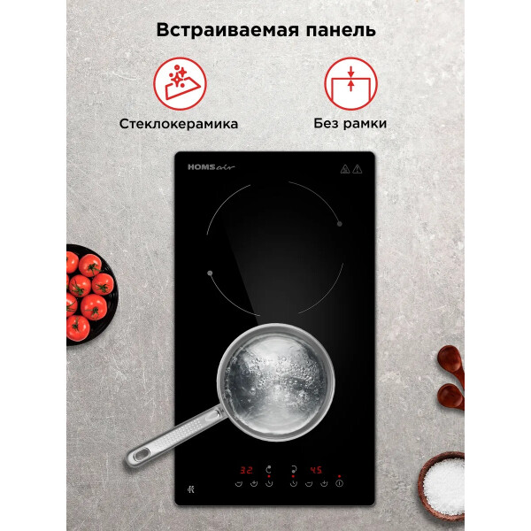 Компактная встраиваемая электрическая варочная панель, выполненная из стеклокерамики.