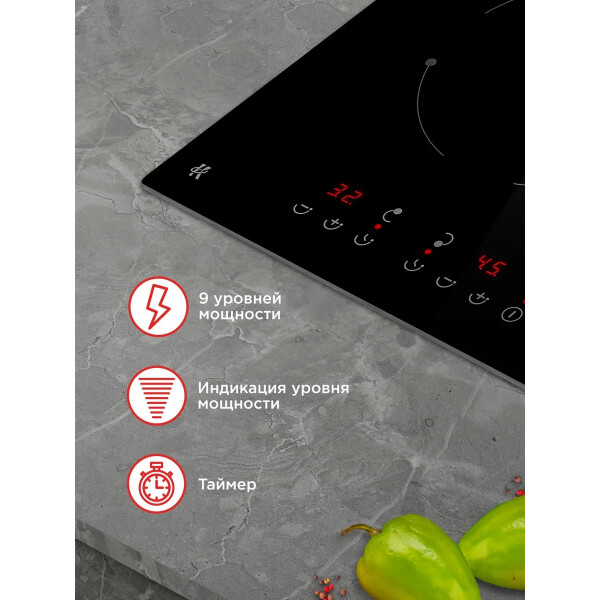 Максимальная мощность панели 3000 Вт, а значит, вы сможете готовить на двух конфорках одновременно без потери мощности. Многочисленные блюда для праздничного стола будут готовы вовремя.