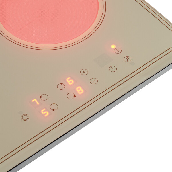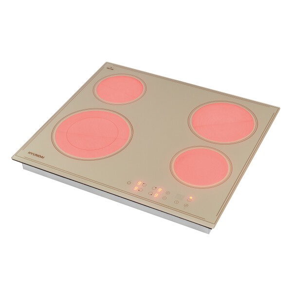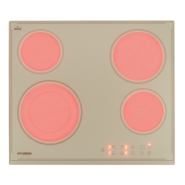 Электрической варочной поверхности Hyundai HHE 6450 BE выполнена из стеклокерамики бежевого цвета.