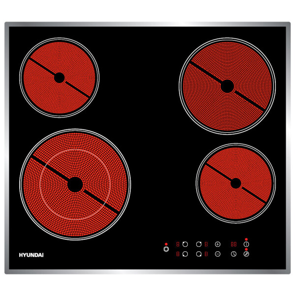 Электрической варочной поверхности Hyundai HHE 6485 IX выполнена из стеклокерамики черного цвета.