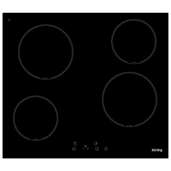 Варочная поверхность Korting HK 60001 B оборудована четырьмя зонами нагрева HiLight. Конфорка достигает установленной рабочей температуры за считанные секунды, мощность регулируется плавно по 9 ступеням, тепло распределяется по всей рабочей зоне.