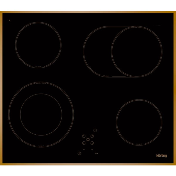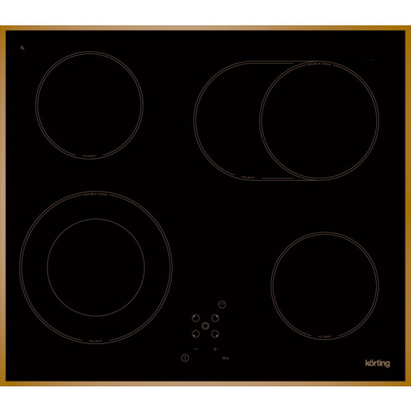 Преимущество варочной панели Korting HK6205RN в оригинальном дизайне сочетание черной стеклокерамической поверхности и рамки цвета бронзы создает эффект ретро-стиля.