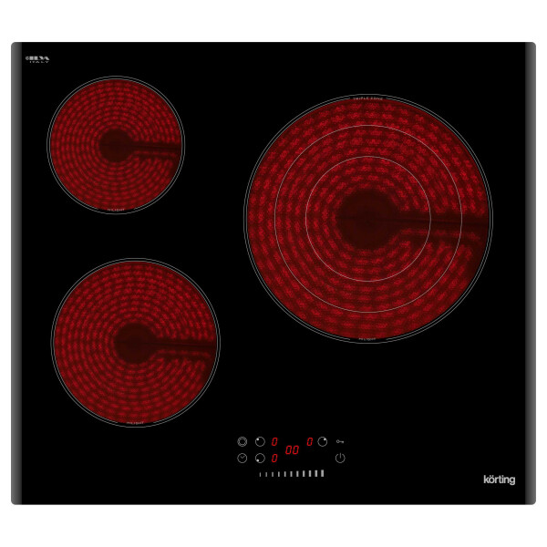Встраиваемая электрическая варочная панель Korting HK 6351 B3 с сенсорным управлением Slider Touch Control. Просто проведите пальцем по шкале сенсорного дисплея, чтобы выбрать нужную температуру или сразу нажмите на нужный вам режим. Вы можете полностью контролировать процесс приготовления всего одним нажатием на сенсор, теперь управление варочной панелью стало легким и понятным.