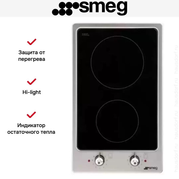 Многофункциональная варочная панель SMEG PGF32C представлена в эффектном сочетании черной стеклокерамики и матовой нержавеющей стали. Модель оснащена двумя зонами сверхбыстрого нагрева. что позволяет ускорить процесс приготовления пищи.