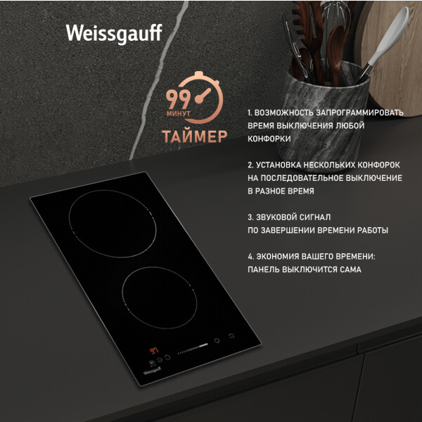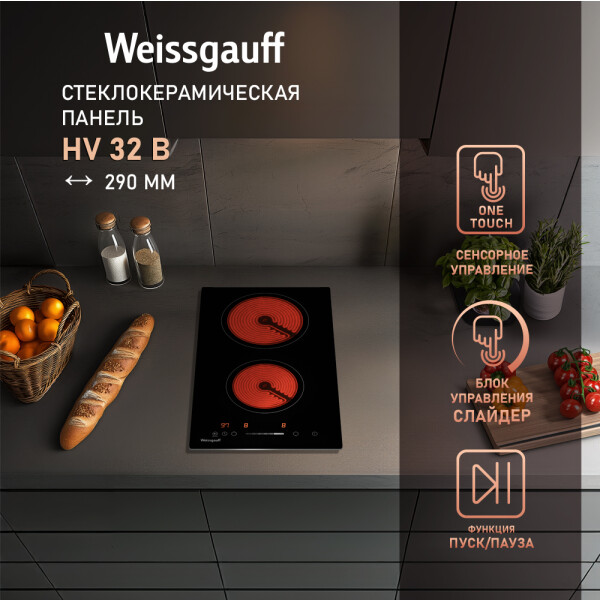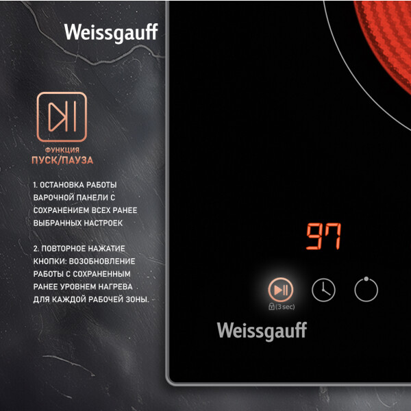 Варочная панель Weissgauff в дизайне Домино, исполненная на стеклокерамике Vitro Ceramic Glass - это сочетание самых технологичных решений и эргономичного дизайна.