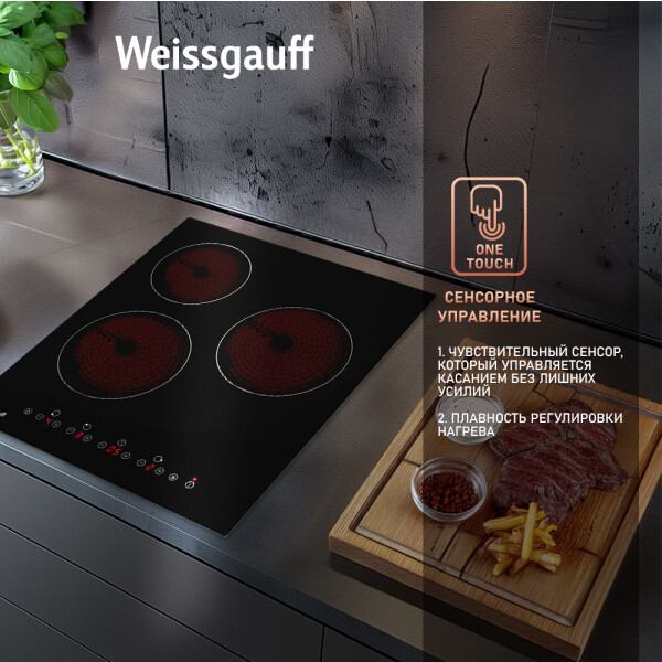 Сенсорное управление - это настоящая гордость Weissgauff, ведь оно реагирует на ваши прикосновения с первого раза, даже в том случае, если руки были мокрыми или холодными, например, после разделки мяса или мытья овощей.