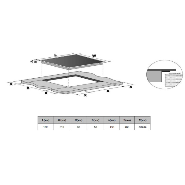 | Глубина встраивания | 49.5