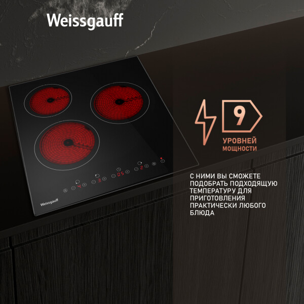 Конфорки на панелях Weissgauff разогреваются в течение всего нескольких секунд, что позволяет вам изменять уровень мощности прямо в процессе приготовления блюда. Выбирайте максимальный режим для быстрого нагрева, используйте меньшие значения для умеренного томления и экономии расхода электричества. Сочетайте и комбинируйте режимы между собой на разных этапах приготовления блюда. Почувствуйте себя настоящим шеф-поваром на своей кухне с бытовой техникой Weissgauff!