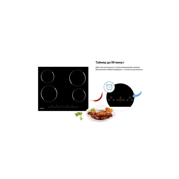 Таймер до 99 минут напомнит вам о готовности звуковым сигналом, а также сам отключит одну или несколько зон конфорок!