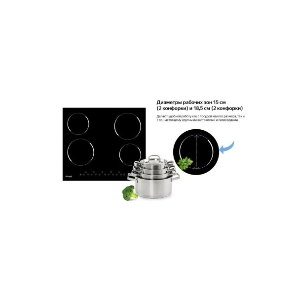 Стеклокерамическая варочная панель Weissgauff с особым дизайном конфорок Glide-Zone гармонично впишется в интерьер вашей кухни, а чувствительное сенсорное управление позволит всего в одно касание задать необходимый уровень нагрева для любой из конфорок.