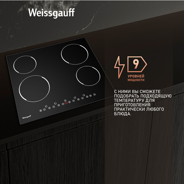 Конфорки на панелях Weissgauff разогреваются в течение всего нескольких секунд, что позволяет вам изменять уровень мощности прямо в процессе приготовления блюда. Выбирайте максимальный режим для быстрого нагрева, используйте меньшие значения для умеренного томления и экономии расхода электричества. Сочетайте и комбинируйте режимы между собой на разных этапах приготовления блюда. Почувствуйте себя настоящим шеф-поваром на своей кухне с бытовой техникой Weissgauff!