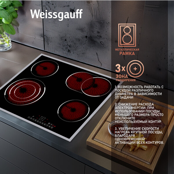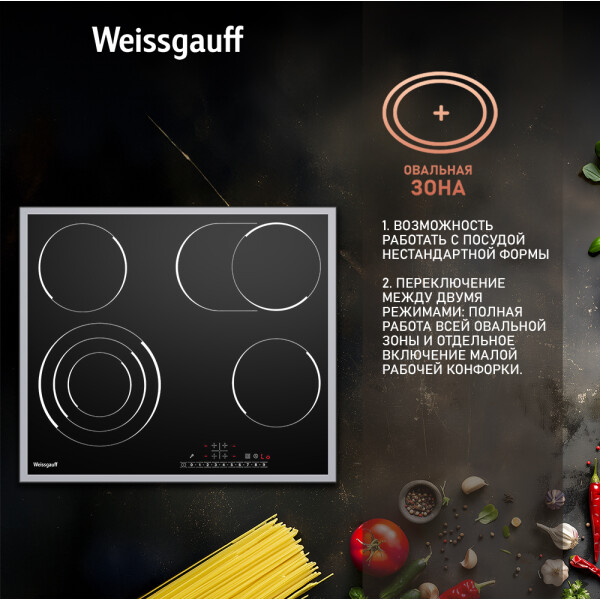 Варочная панель с металлической рамкой по периметру, переключаемой трёхконтурной конфоркой и овальной зоной гусятницей - это наиболее продвинутое и функциональное решение среди всех варочных панелей Weissgauff класса Hi-Light. Высококачественная стеклокерамика и чувствительное сенсорное управление со слайдером делают эту модель еще ближе к абсолютному совершенству.