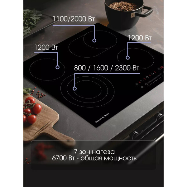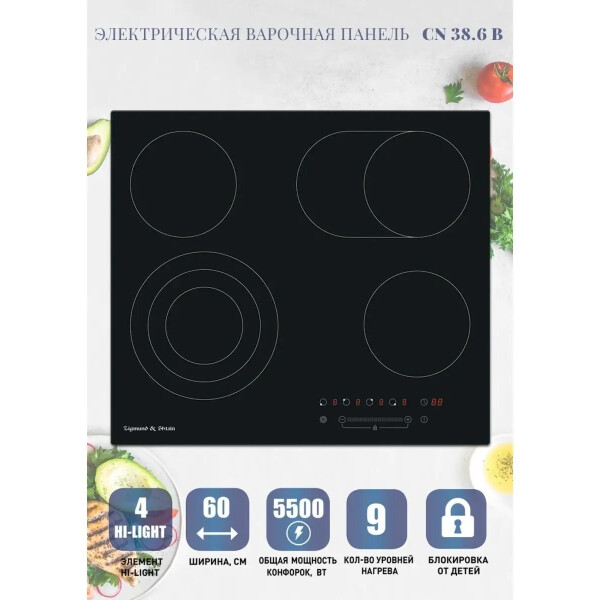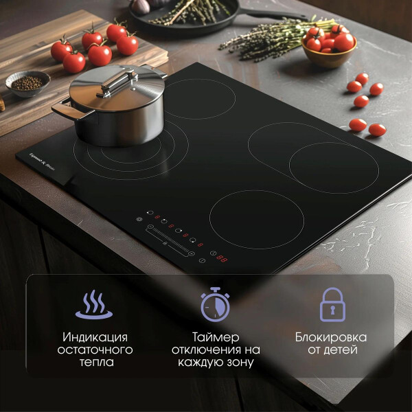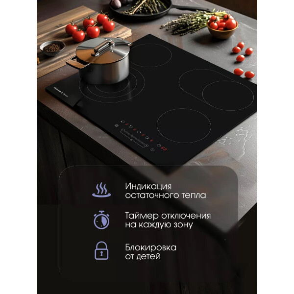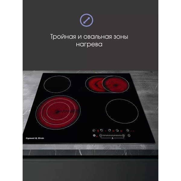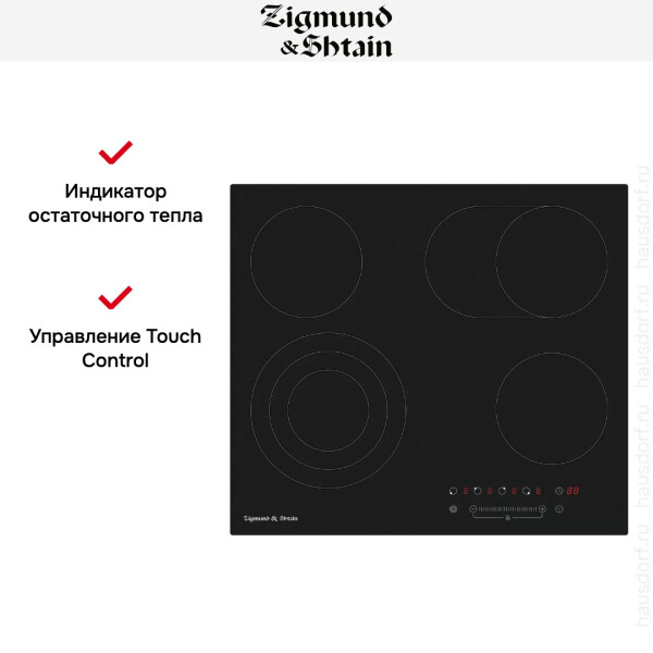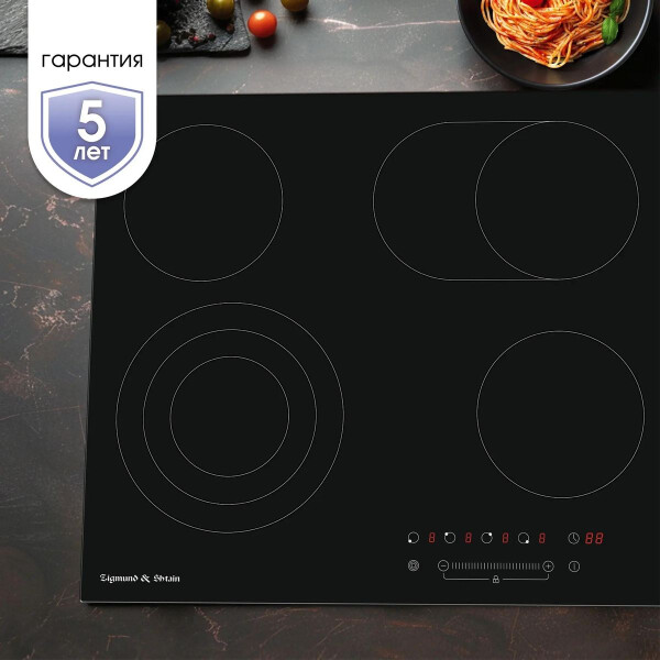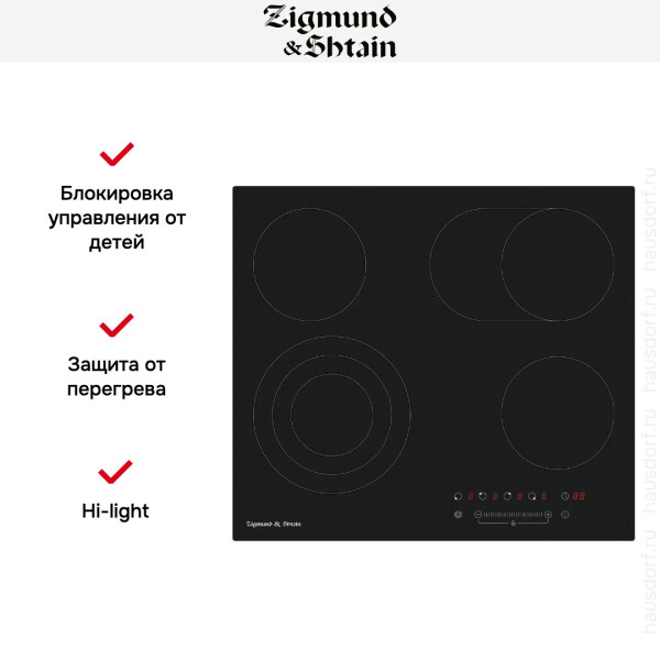 Электрическая варочная панель Zigmund & Shtain совершенна и с точки зрения дизайна и с точки зрения возможностей. Каждая конфорка имеет таймер с отключением, индикацию остаточного тепла, блокировку от детей. В целях безопасности так же имеется защита от перегрева, перелива и случайного старта.