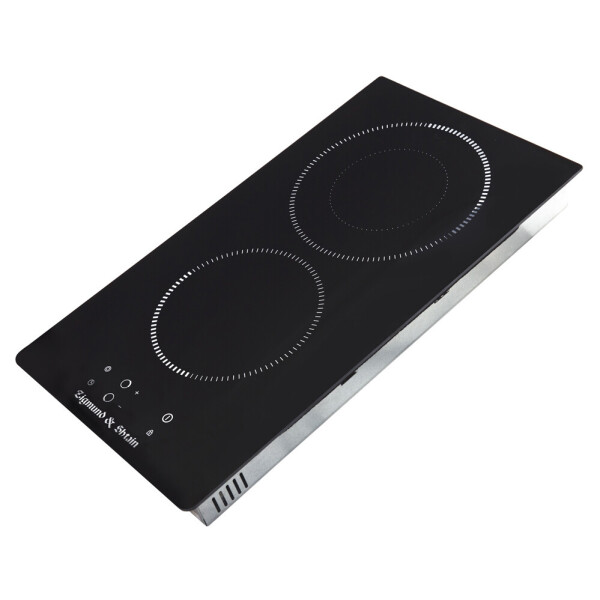 Верхняя панель изготовлена из стеклокерамики в элегантном черном цвете. Этот материал обеспечивает стильный внешний вид и характеризуется практичностью. Система защиты от перегрева и функция блокировки от детей обеспечивают максимально безопасную эксплуатацию прибора. Встраиваемая варочная поверхность Zigmund & Shtain CN 40.3 B легко управляется с помощью сенсорных кнопок.
