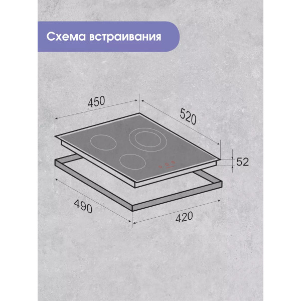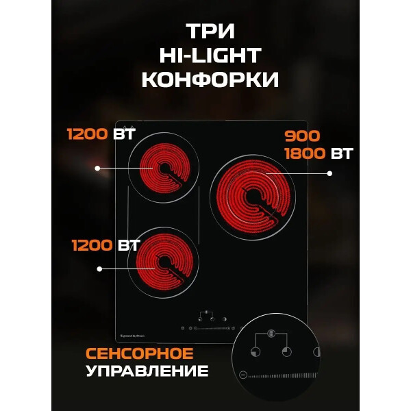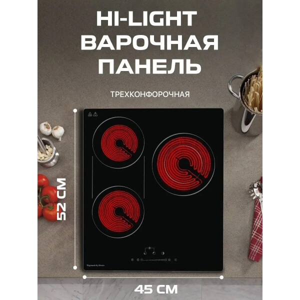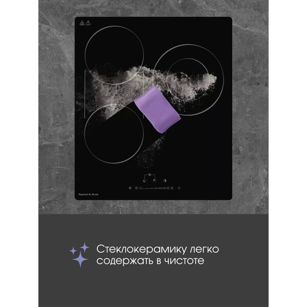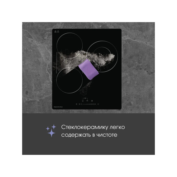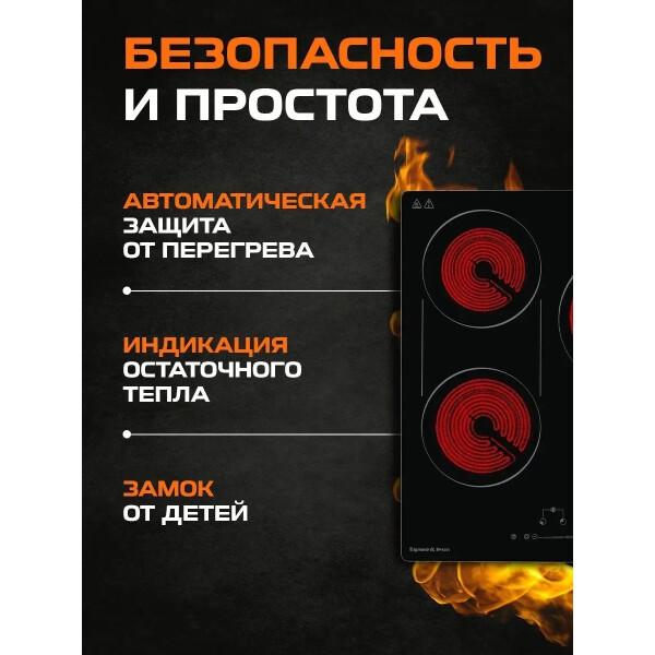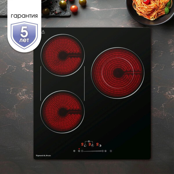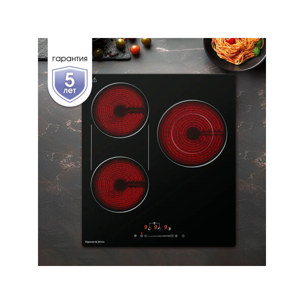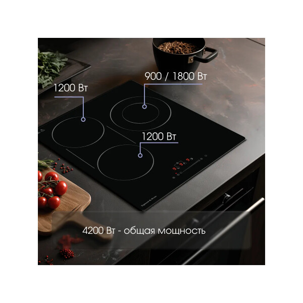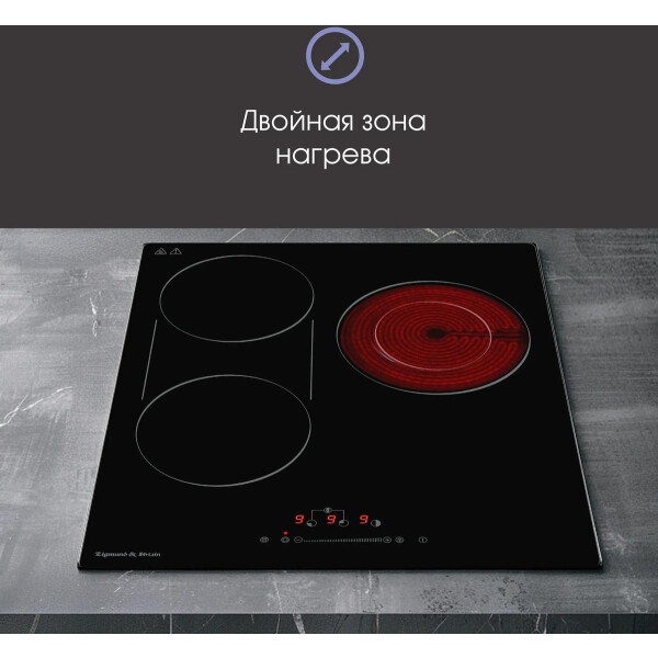 Девять уровней мощности позволяют настраивать интенсивность нагрева простым прикосновением кнопок на сенсорной панели. Функция блокировки панели помогает предотвратить изменение настроек. Индикация остаточного тепла обезопасит пользователей от образования ожогов. Панель из стеклокерамики черного цвета характеризуется стойкостью к механическим повреждениям и простотой в уходе.