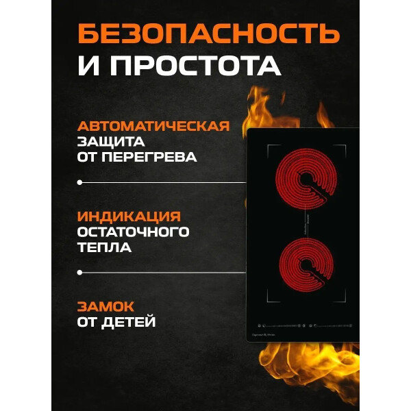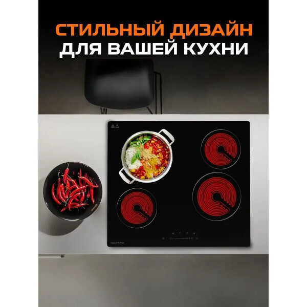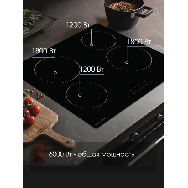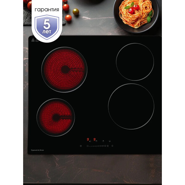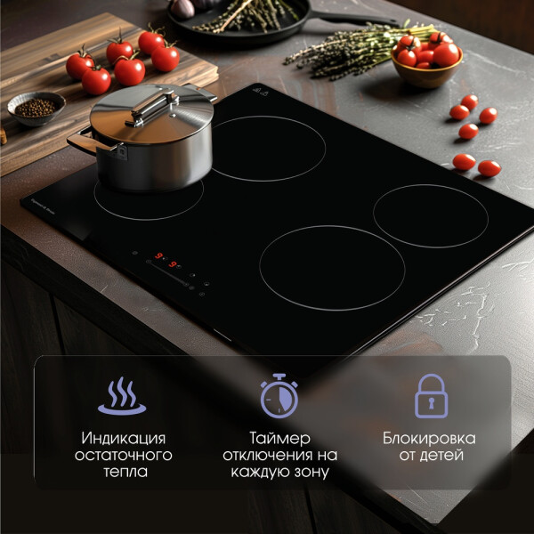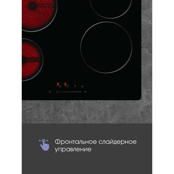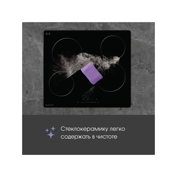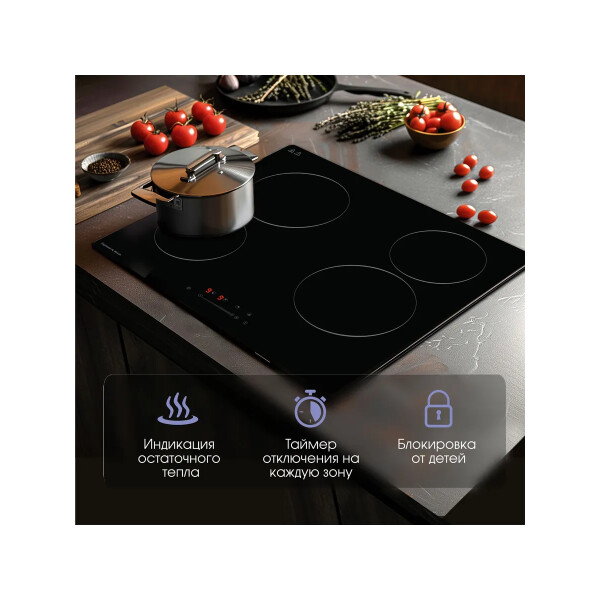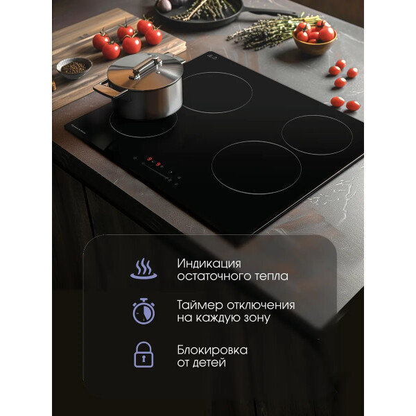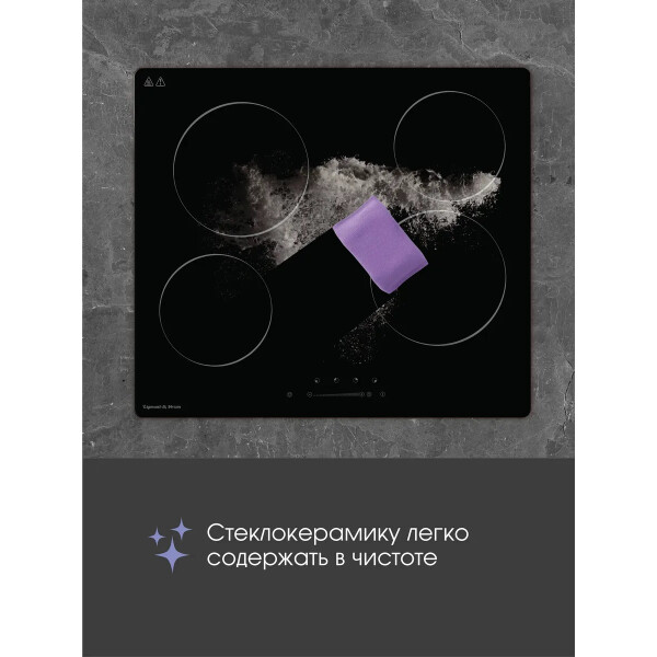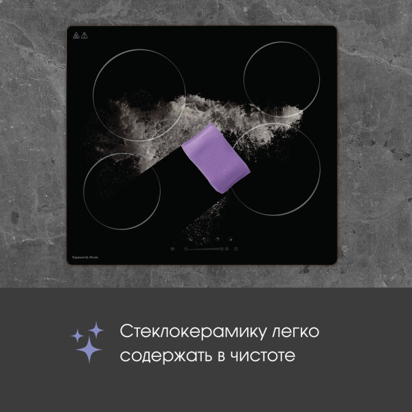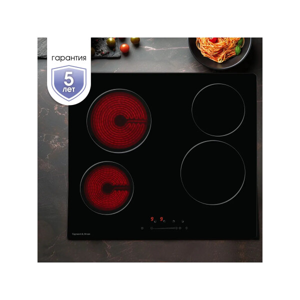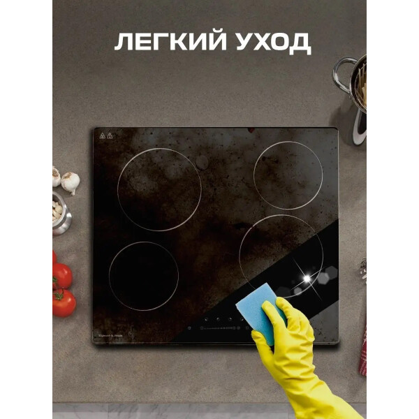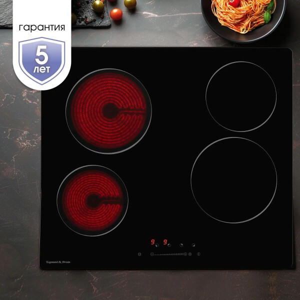 Для изготовления представленной модели используется стеклокерамика, отличающаяся высокой степенью надежности, экологичностью и прочностью. Очистить такую варочную поверхность от загрязнений не составит труда.