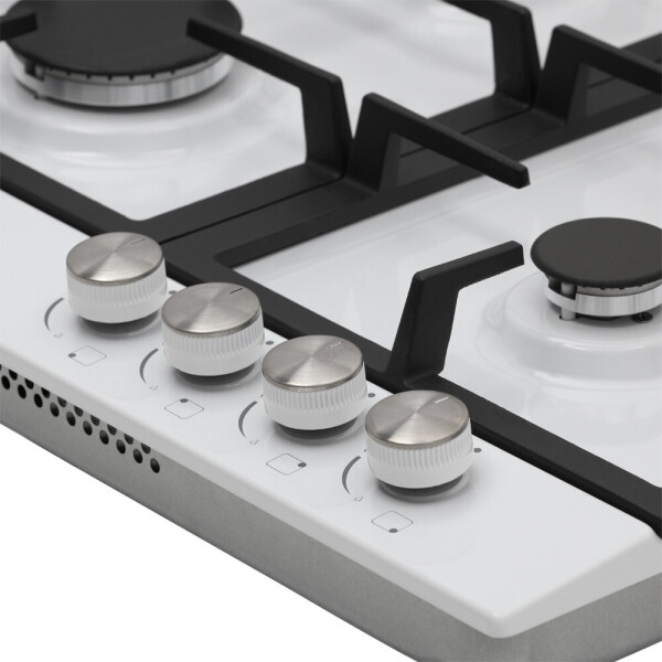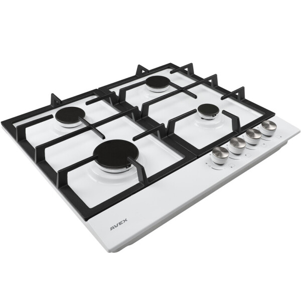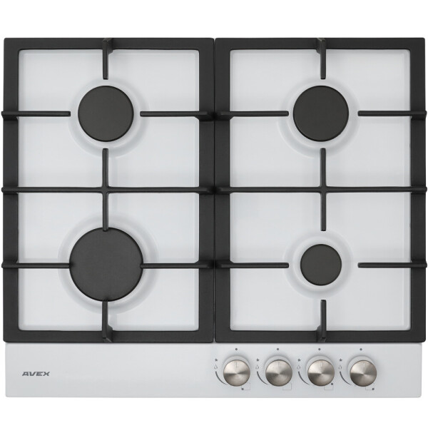 Газовая варочная поверхность AVEX HS 6241 W белого цвета имеет 4 конфорки.