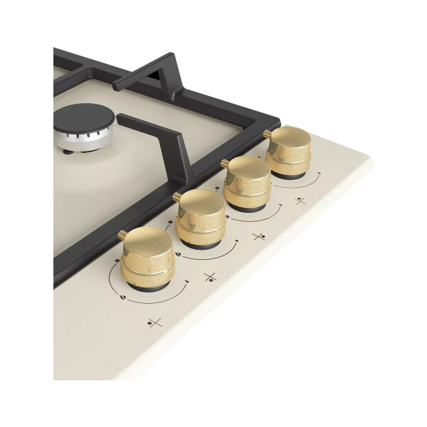 Встраиваемая газовая плита в стиле рустик с удобным расположением поворотных ручек и надежными чугунными решетками. Три газовые конфорки разного диаметра подойдут для посуды любого размера и типа, а дополнительная подставка для кофеварки поможет удобно сварить кофе в турке. Дополнительная конфорка предназначена для комфортного приготовления на сковороде-вок.