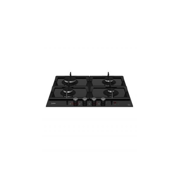 Встраиваемая газовая варочная панель с 4 конфорками и чугунными решетками. Панель управления располагается на фронтальной стороне плиты, а в ручки переключения встроен автоматический электроподжиг. Конфорки оснащены системой газ-контроля, которая прекращает подачу газа, если пламя случайно потухнет. Поверхность газовой плиты выполнена из термостойкого стекла, которое легко чистить после каждого использования.