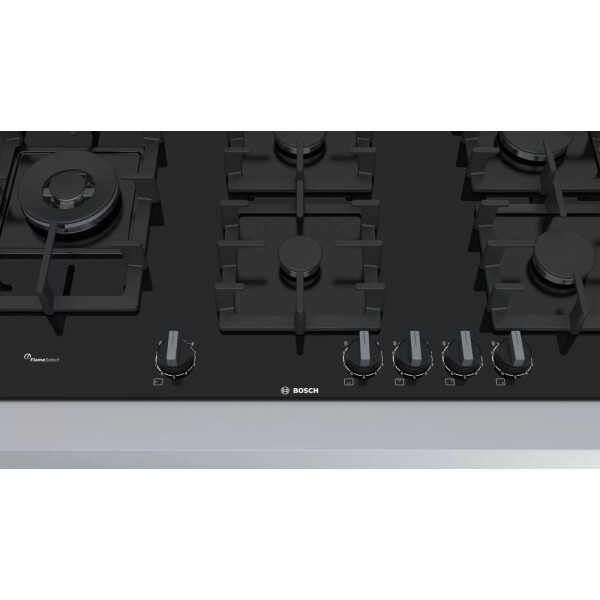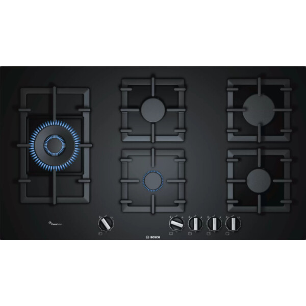 Bosch PPS9A6B90 - газовая варочная панель независимого типа установки, ее габаритные размеры составляют 52х91,5х4,5 см. Модель оснащена пятью конфорками разного диаметра, которые работают на 9 уровнях мощности. Система FlameSelect обеспечивает быстрый выбор оптимального уровня интенсивности пламени, что значительно ускоряет процесс приготовления пищи.