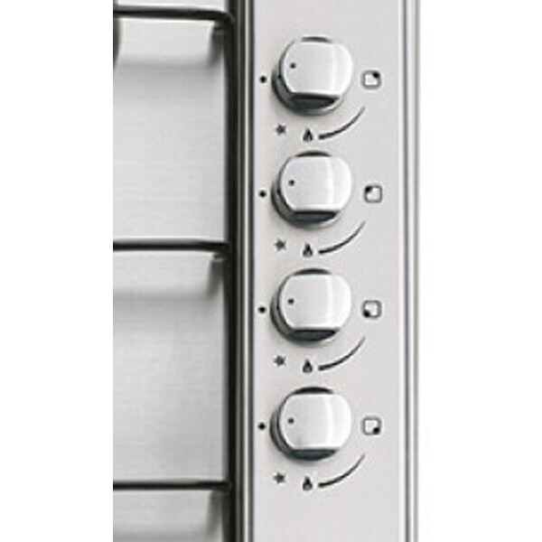 Модель управляется с помощью поворотных переключателей, расположенных справа от горелок. Таким образом, исключается даже случайное соприкосновение с горячими поверхностями в процессе работы. Решётки и крышки горелок изготовлены из особо прочной высококачественной эмали. Ухаживать за варкой достаточно просто: благодаря плавным линиям, нержавеющая поверхность легко поддаётся очистке любыми моющими средствами и надолго сохраняет первоначальный внешний вид.