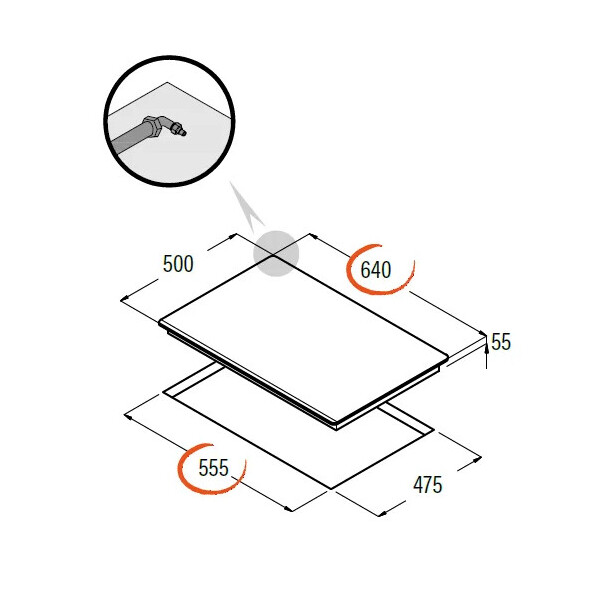 Принципиальной особенностью данной модели является увеличенная ширина (64 вместо 60 см.) при сохраненных стандартных размерах для встраивания. С этой варочной панелью можно более не беспокоиться что кастрюли и сковородки уместятся одновременно, что особенно важно, когда приходится регулярно готовить на большое количество людей.