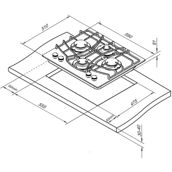 Для каждой конфорки предусмотрен электрод автоматического розжига и термоэлектрический датчик, предотвращающий утечку газа. Функция «Минимальный огонь» делает очень удобными разогрев блюд и поддержание тепла – она не допускает угасания пламени при повороте регулятора в крайнее положение.