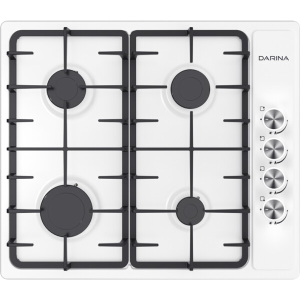 Хорошо продуманная архитектура Darina 1T1 BGM 341 11 W предусматривает присутствие четырех конфорок разного диаметра. Они находятся на достаточном расстоянии друг от друга, что позволит готовить в один и тот же момент в нескольких больших емкостях. Конфорки оснащены чугунными решетками, которые отличаются износостойкостью. Модель оборудована практичными переключателями, которые находятся справа от рабочей части устройства.