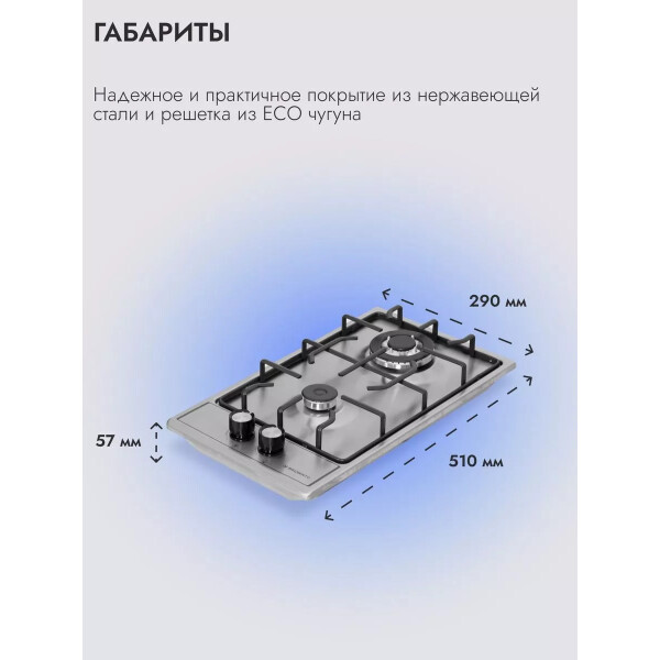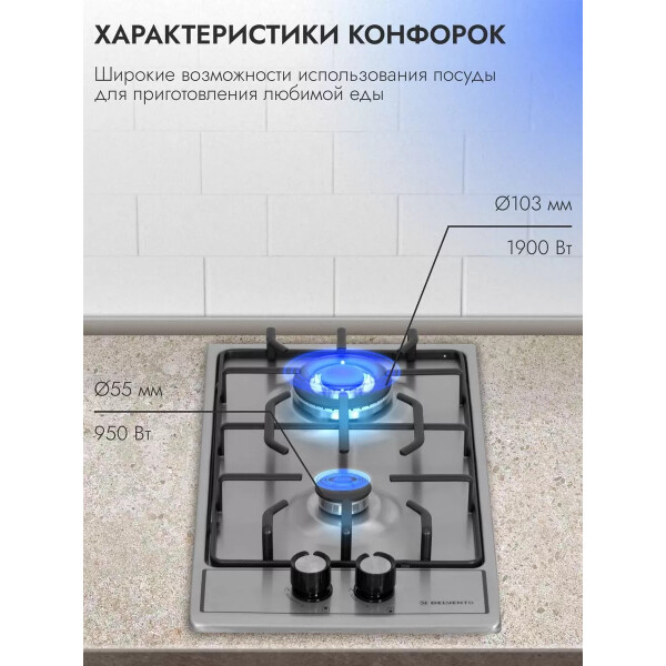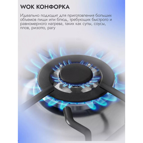 Приобретая поверхность, Вы получаете 2 конфорки с электроподжигом в ручке и прочной решеткой, которая держит форму и отвечает за равновесие посуды, стоящей на них. Поворотная ручка автоматического зажигания и WOK-горелка повышенной мощности позволят сделать использование поверхности значительно комфортнее.Автоматическая подача искры при включении заменяет использование спичек и зажигалок.