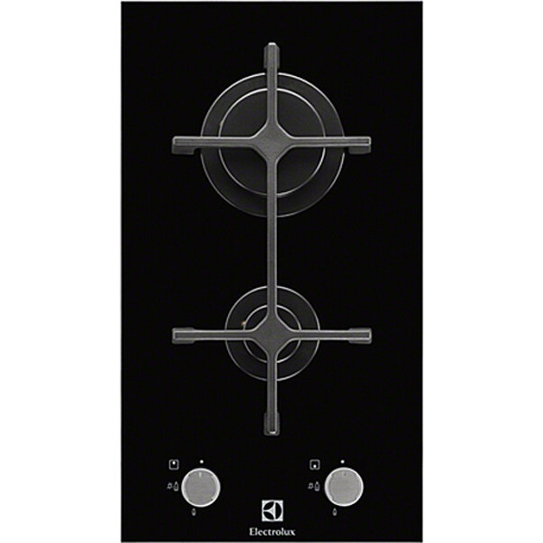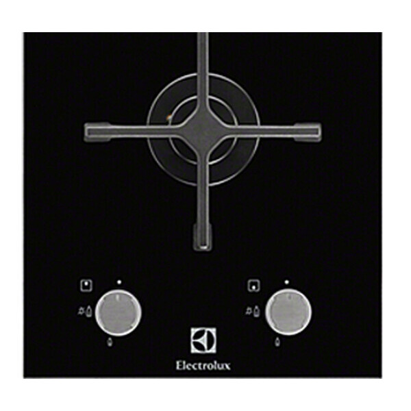 Газовая варочная поверхность Electrolux EGC 3322 NOK двухконфорочная модель черного цвета из простого в уходе закаленного стекла. Чугунные решетки надежны и выдержат любую посуду.