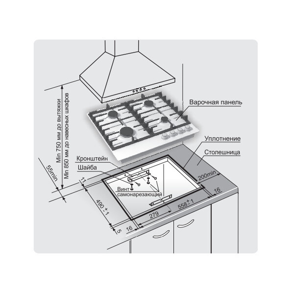 | Ширина встраивания | 55.8