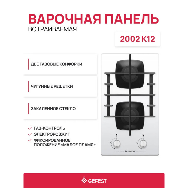 Газовая варочная панель Gefest ПВГ 2002 К12 классическая встраиваемая панель, оснащенная всем необходимым для повседневного удобного и безопасного использования. Панель будет удобна как для малой посуды, так и для больших кастрюль и сковород, включая посуду WOK.