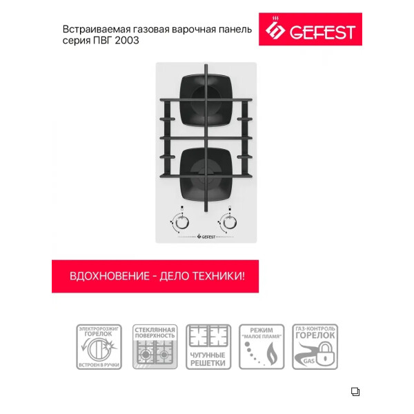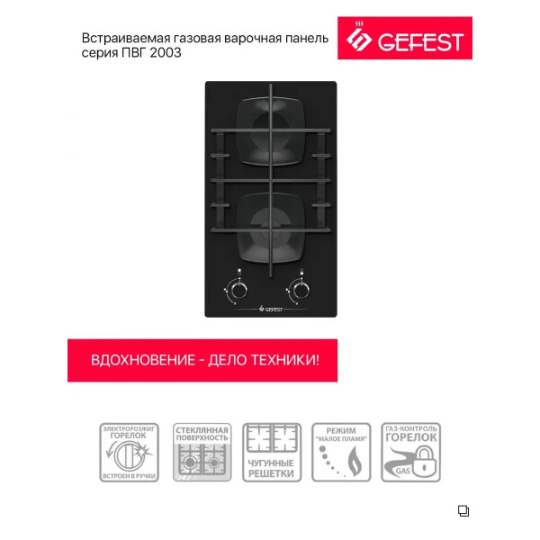 Газовая варочная панель Gefest ПВГ 2003 классическая встраиваемая панель, оснащенная всем необходимым для повседневного удобного и безопасного использования. Панель будет удобна как для малой посуды, так и для больших кастрюль и сковород, включая посуду WOK.