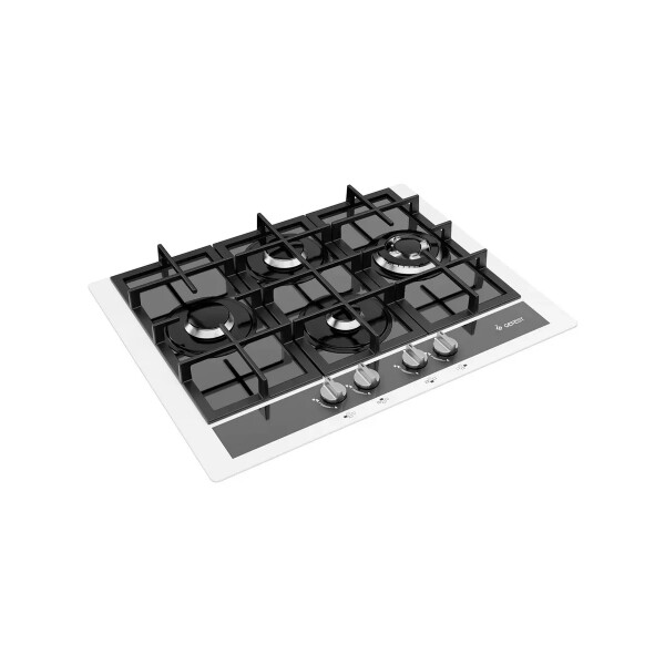 Из функций: автоматический электроподжиг, есть встроенный газ-контроль и опция минимального огня. Варочная поверхность сделана из закаленного стекла. А съемные чугунные решетки легко мыть.
