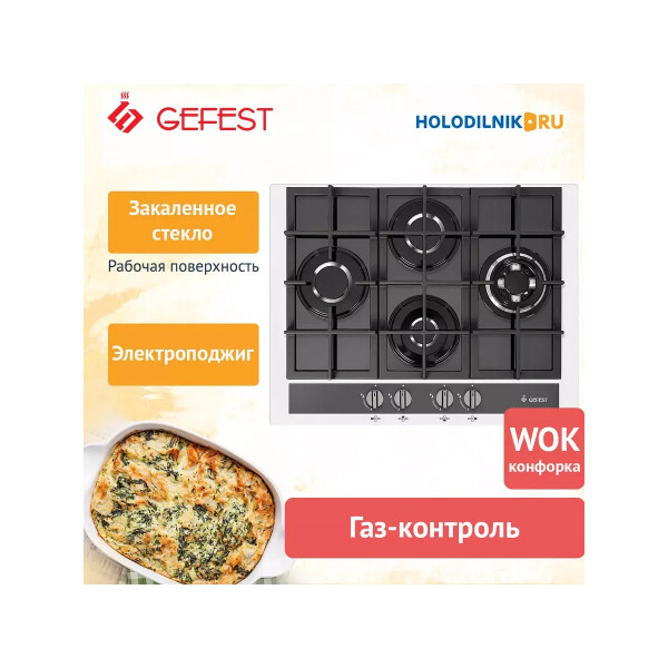Встраиваемая газовая варочная панель Gefest ПВГ 2232-01 Р5 черного цвета оснащена четырьмя конфорками.