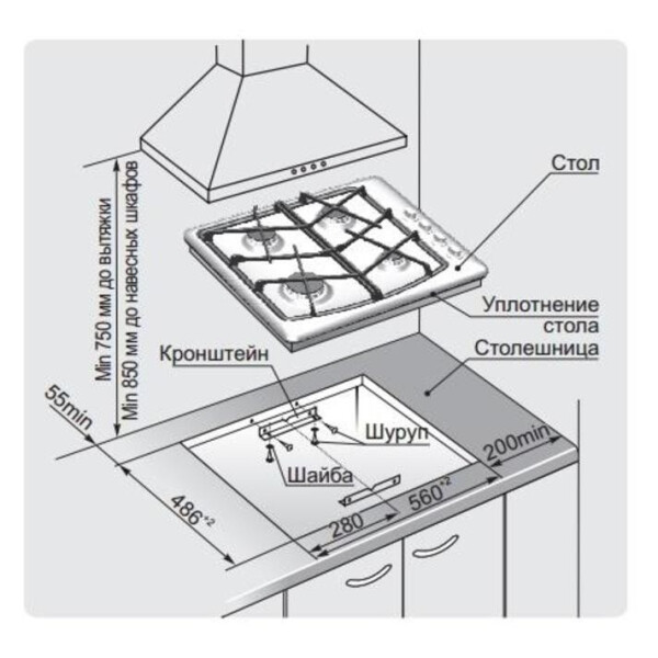 | Ширина встраивания | 56