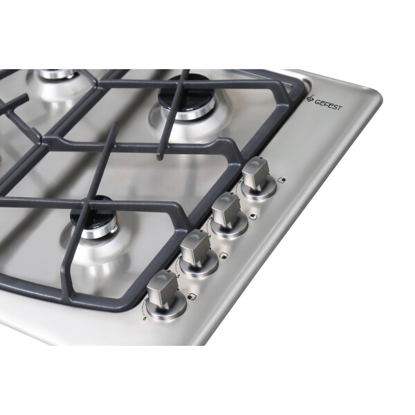 Газовая варочная поверхность Gefest СН 1211 К30 имеет 4 конфорки, совместимые с любой посудой. Монтаж представленной модели независимый. Это означает, что на газовой поверхности есть индивидуальное управление. Данная поверхность разработана из достойной нержавеющей стали, благодаря чему устройство прослужит длительное время. Решетки стола выполнены из чугуна. Gefest СН 1211 К30 оснащена поворотными переключателями, обладает стабильным электроподжигом, системой Газ-контроль и фиксированным положением Малое пламя.
