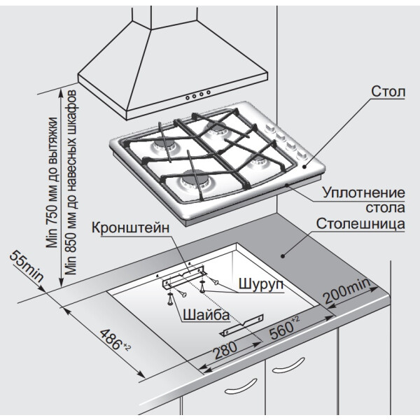 | Ширина встраивания | 56