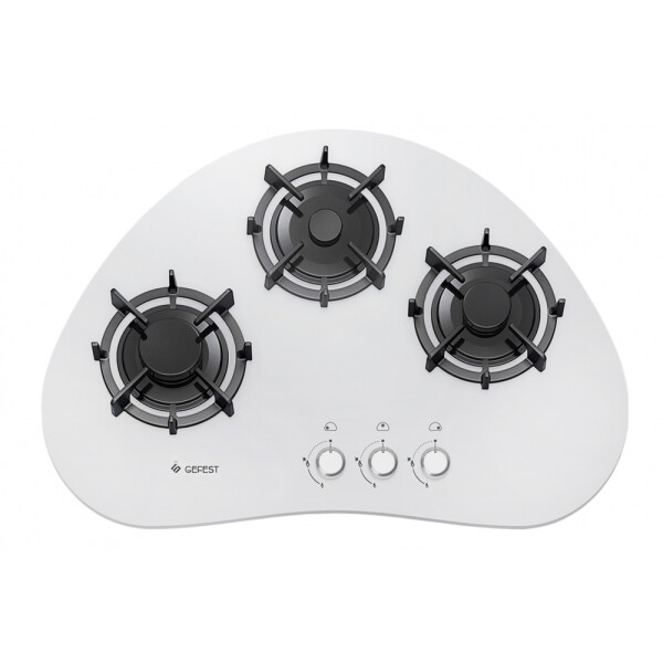 Газовая варочная поверхность Gefest СН 2120 К6 имеет оригинальную форму и белую поверхность из закаленного стекла. Представленная модель дополнена решеткой из чугуна для установки посуды на огонь. Модель имеет 3 горелки разнообразного диаметра, 1 малую и 2 стандартных. Мощность горелок варьируется от 1 до 1.7 кВт. Все конфорки оснащены газ-контролем, поэтому варочная поверхность является абсолютно безопасной в использовании – при возникновении сквозняка и задувании огня подача газа автоматически прекратится. Дополнительное достоинство представленной варочной панели – наличие встроенного в каждый поворотный переключатель электроподжига. Это позволяет обходиться на кухне без спичек и зажигалок.
