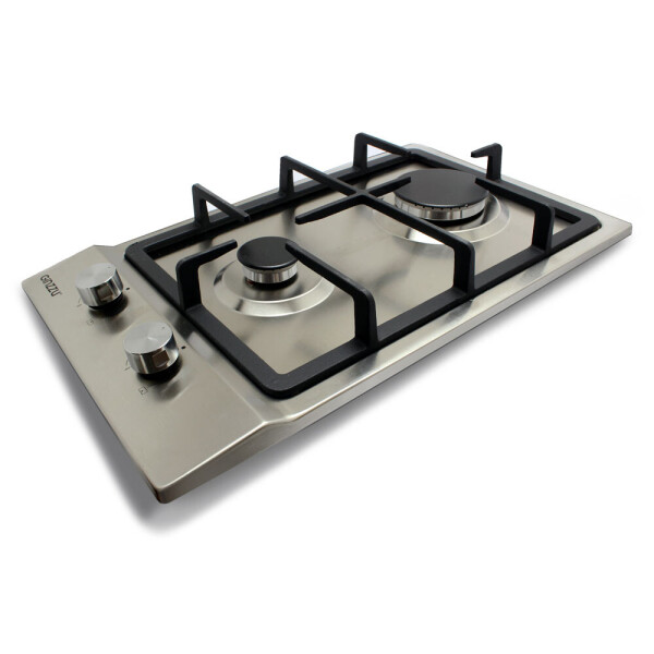 Газовая варочная поверхность GiNZZU представляет собой компактное решение мощностью 4 кВт для кухонь небольшого размера. Модель оборудована 2 конфорками различного диаметра, что обеспечит комфортное приготовление различных блюд. Включение и управление силой огня осуществляется при помощи расположенных на лицевой поверхности ручек с поворотным механизмом, которые также оснащены встроенным электроподжигом, что обеспечивает включение плиты за считанные мгновения. Также модель отличается повышенной безопасностью за счет системы газ-контроля, автоматически блокирующей его подачу при обнаружении утечки.