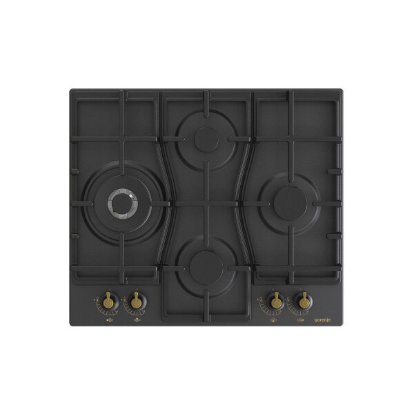 Gorenje GW6D42CLB газовая варочная поверхность в стиле ретро, в чёрном цвете с оригинальным расположением конфорок. Оснащена 4 конфорками, высокоэффективная WOK c тремя рядами пламени равномерно нагревает посуду, поэтому время приготовления блюд сокращается.