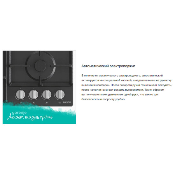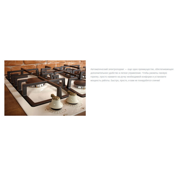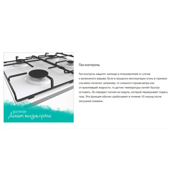 Варочная панель Gorenje GW642CLB представлена в черном цвете с бронзовой фурнитурой. На двухконтурной конфорке WOK пища гораздо быстрее готовится и поддается равномерной тепловой обработке. Чугунные решетки легко очищаются от загрязнений. Газ-контроль не допустит утечки газа, при неконтролируемом затухании горелки.